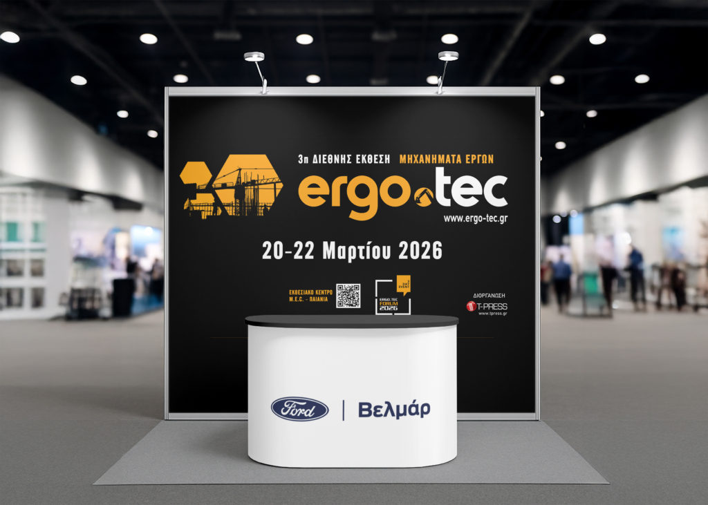 Η Ford Βελμάρ συμμετέχει για άλλη μία χρονιά στη 3η διεθνή έκθεση ERGO.TEC / Μηχανήματα Έργων, την κορυφαία έκθεση στην Ελλάδα για τα μηχανήματα έργων και τον εξοπλισμό εργοταξίων, από την Παρασκευή 20 έως και την Κυριακή 22 Μαρτίου στο εκθεσιακό κέντρο MEC στην Παιανία.
